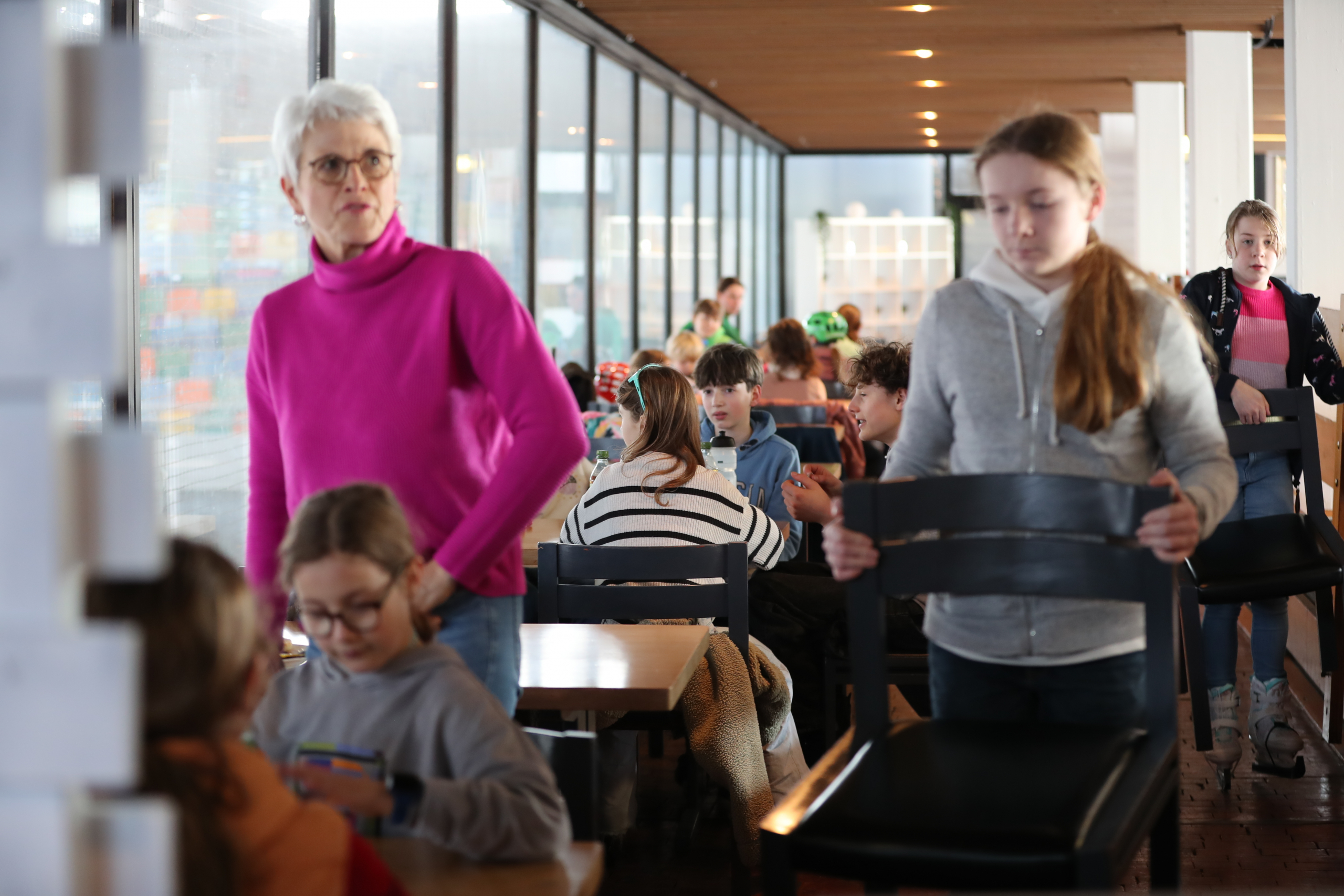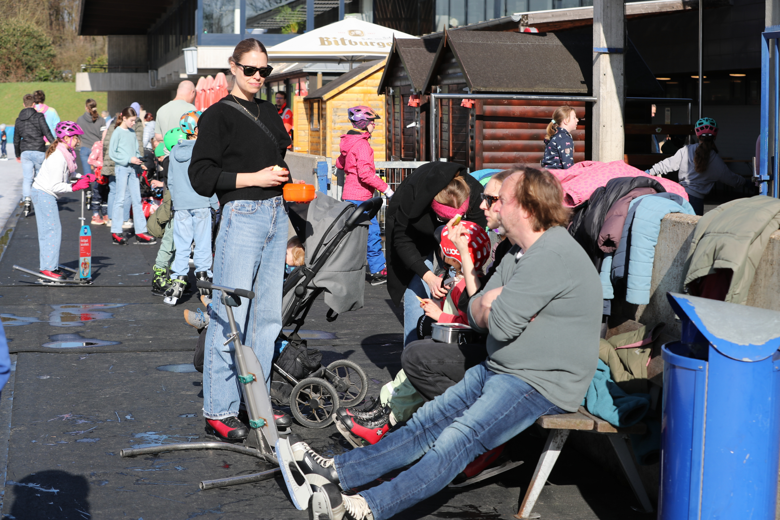 Natürlich durfte auch eine Pause nicht fehlen. Ab 12 Uhr war für die Gruppe ein Platz im Restaurant reserviert. Dort konnten sich alle aufwärmen, etwas essen und trinken und sich über die Erlebnisse auf dem Eis austauschen. In entspannter Atmosphäre wurde viel gelacht und erzählt, bevor es anschließend noch einmal zurück auf die Eisfläche ging.