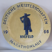 Am Ende des offiziellen Teils überraschte uns Karl-Heinz Sievers noch mit einem Geschenk in Form von 2 Tellern. Karl-Heinz Sievers, der 1968 an den Olympischen Spielen in Mexico City teilgenommen hat, wurde im Jahre 1966 Deutscher Marathonmeister im Einzel und auch mit der Mannschaft in Krefeld, wo es diese Teller zur Erinnerung gab. Um seine Verbundenheit zu unserem Verein zu zeigen, hat er dem Verein diese Erinnerungen geschenkt. Wir bedanken uns ganz herzlich für die großartige Geste und wir werden für diese Teller einen geeigneten Platz suchen.